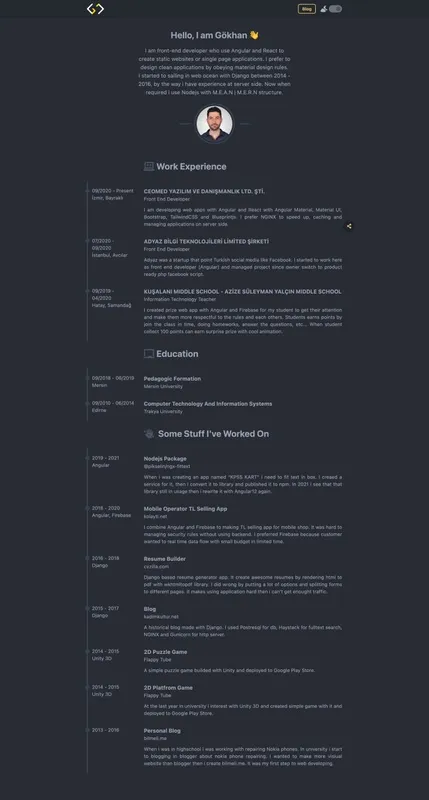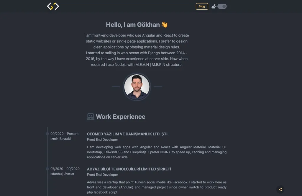 With changes in Google Pagespeed metrics, I noticed a decrease in the score of my old website. I then switched to Gatsby.js and TailwindCSS for a timeline design. Later on, I started sharing my blog posts on the subdomain blog.gkhan.me using WordPress.